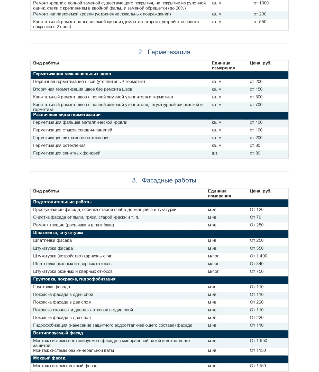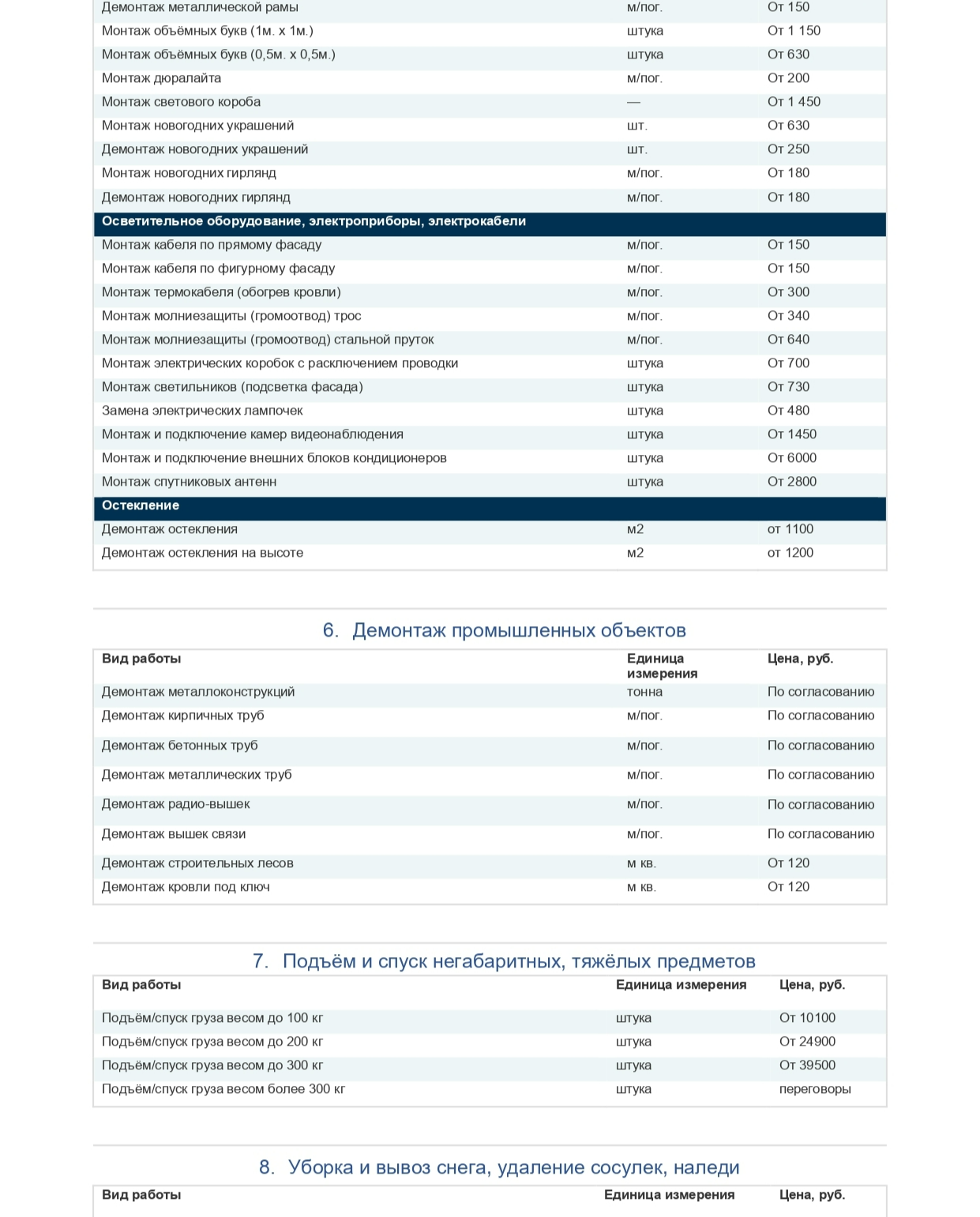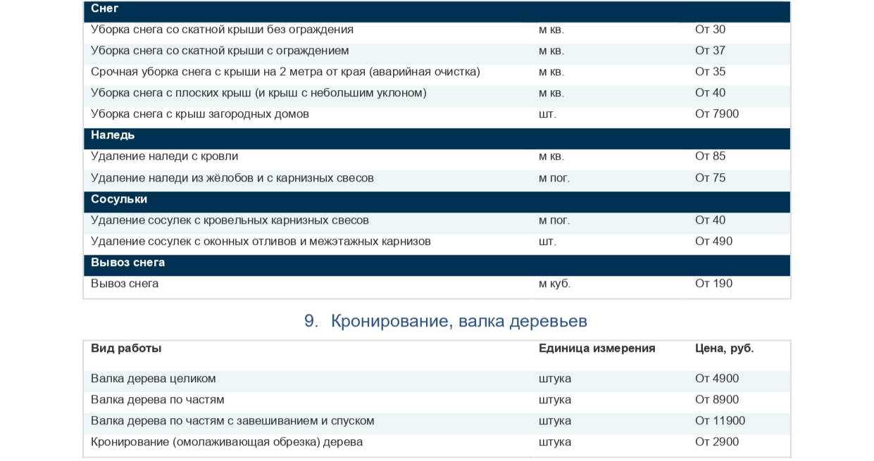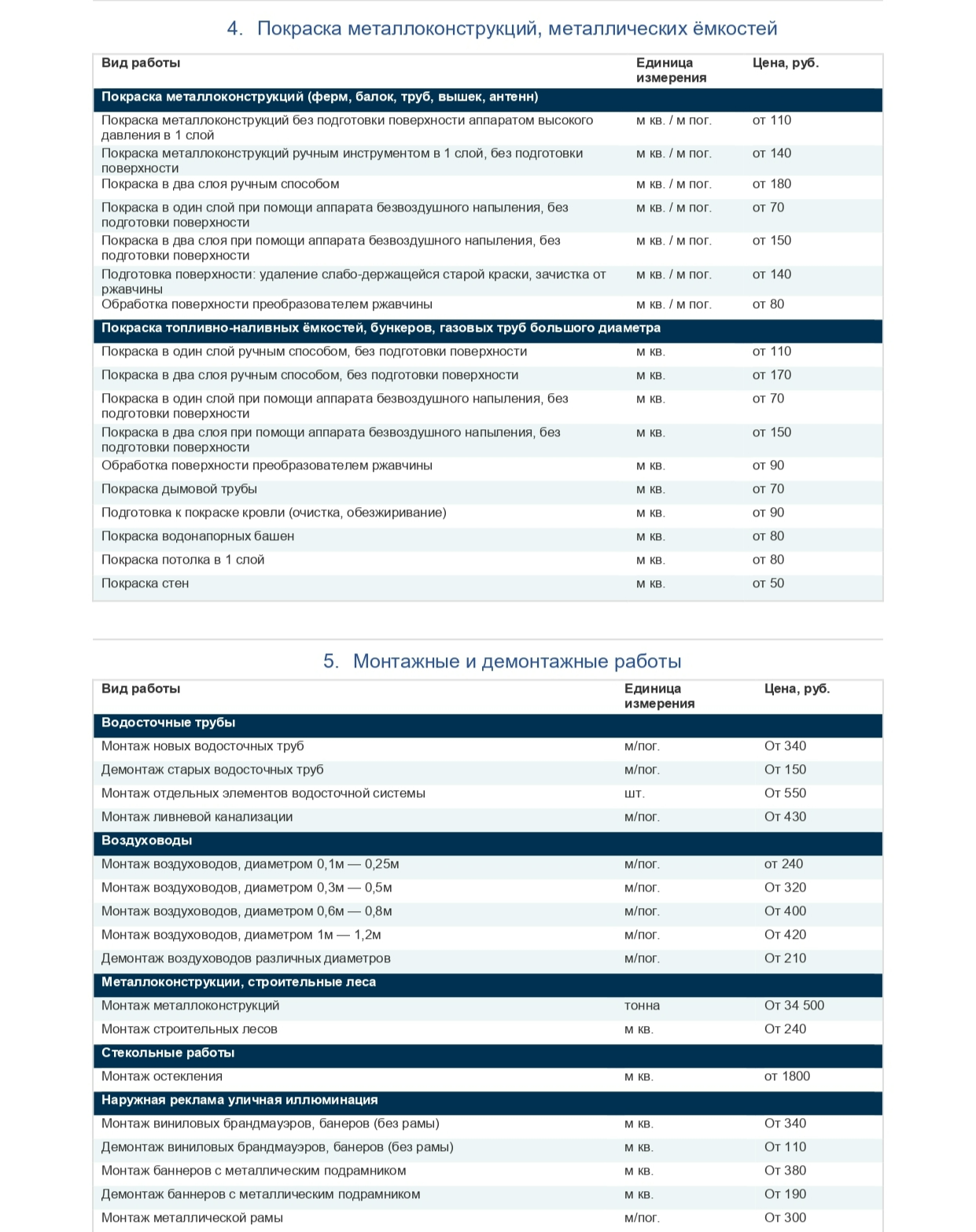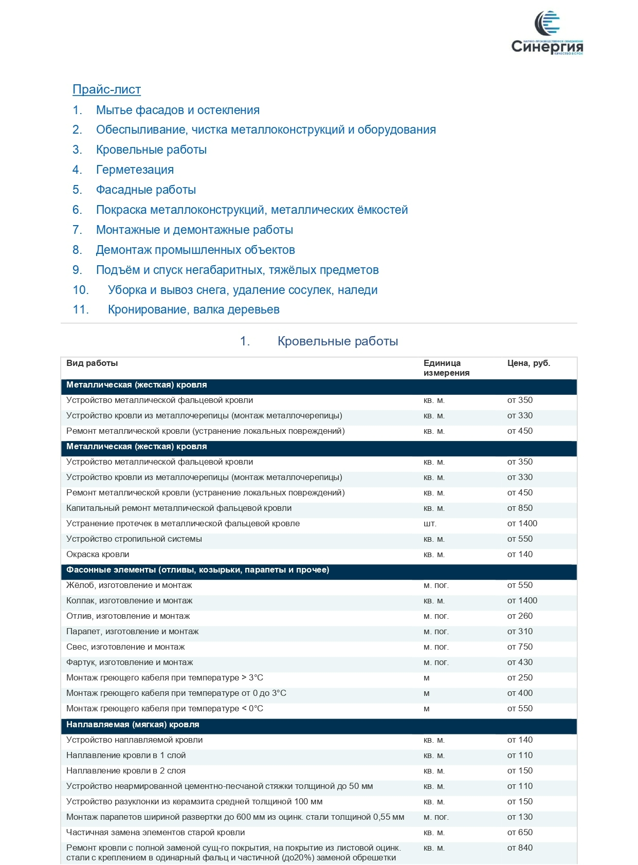 Прайс-лист на услуги промышленного альпинизма от НПО «Синергия»